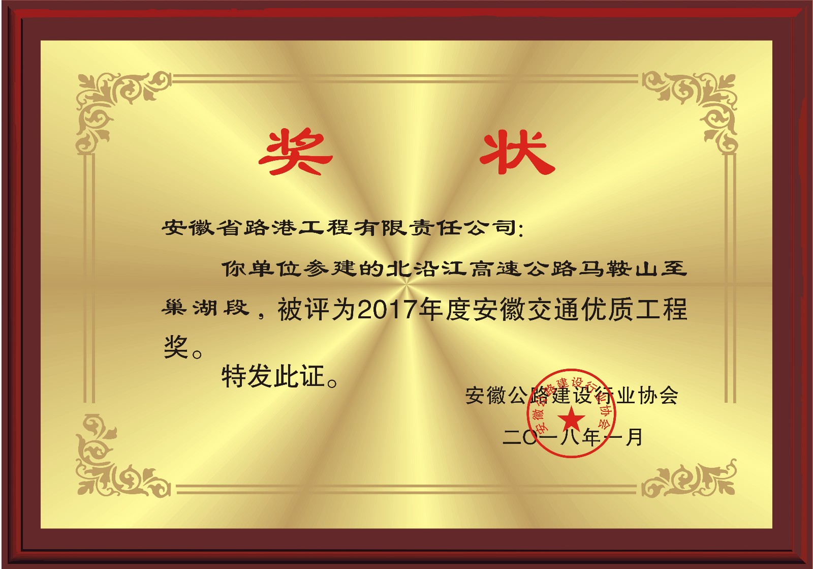 2017年度安徽省交通優(yōu)質(zhì)工程獎