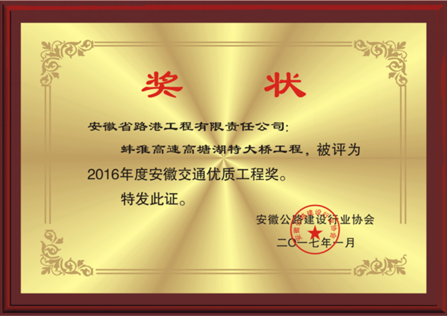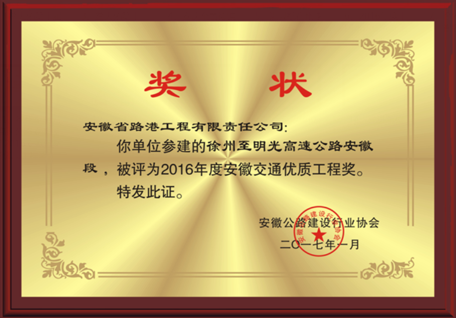 2016年度安徽省交通優(yōu)質(zhì)工程獎(jiǎng)