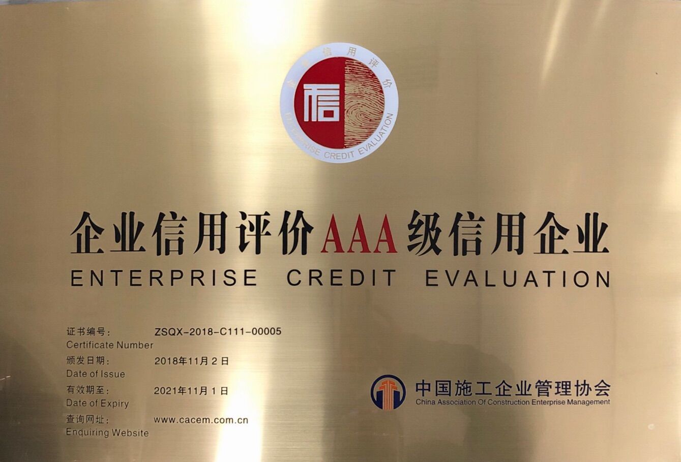 中國施工企業(yè)管理協(xié)會(huì)AAA級(jí)信用企業(yè)