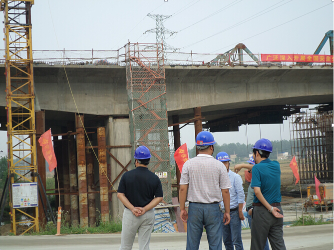 李董事長(zhǎng)重點(diǎn)檢查了掛籃懸澆及支架現(xiàn)澆的安全生產(chǎn)情況,聽(tīng)取了項(xiàng)目經(jīng)理關(guān)于工程安全質(zhì)量和進(jìn)度的匯報(bào),隨后在項(xiàng)目部會(huì)議室召開(kāi)了簡(jiǎn)短的會(huì)議。