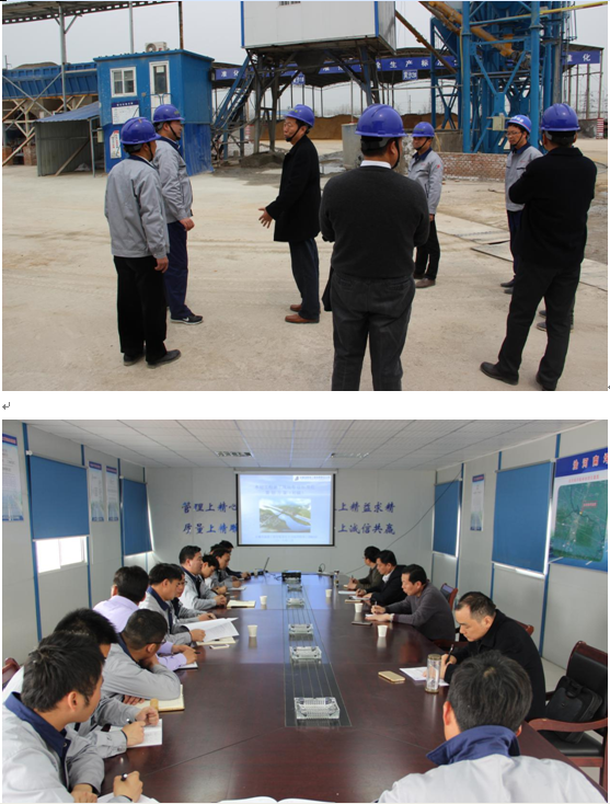 李董事長一行在項目部主要人員的陪同下查看了S305跨閘橋、下閘室引航道、閘室基坑開挖、預制梁場的施工現(xiàn)場,重點檢查了現(xiàn)場的臨時用電、臨邊防護等標準化建設,隨后在項目部會議室召開會議。在聽取項目部標準化前期策劃方案的匯報后,李董事長在肯定項目部在短期內(nèi)取得成績的同時,就項目標準化創(chuàng)建和下一步工作提出了“明確目標、精心策劃、細化方案、認真落實、不斷改進、實現(xiàn)目標”的具體要求。李董事長還就綠色施工、工序工藝、安全防護、材料堆放、場地排水、臨時用電、施工便道等前期現(xiàn)場布設標準化工作提出了細致的指導意見,并就項目部即將于4月1日在省交通質(zhì)監(jiān)局匯報的材料要“少文字、多圖表”的修改意見。
