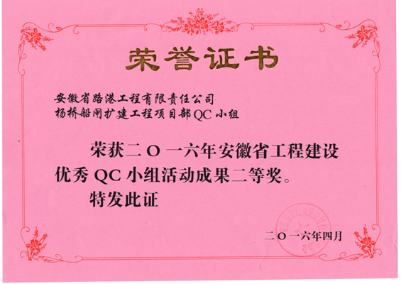 日前,安徽路港合肥市郎溪路工程第四標(biāo)段QC小組開(kāi)展了《樁基聲測(cè)管施工質(zhì)量控制 》課題攻關(guān),楊橋船閘擴(kuò)建工程項(xiàng)目部QC小組開(kāi)展了《閘室墻身砼大面平整度質(zhì)量控制》課題攻關(guān),分別榮獲安徽省工程建設(shè)優(yōu)秀QC小組活動(dòng)成果一等獎(jiǎng)和二等獎(jiǎng)。