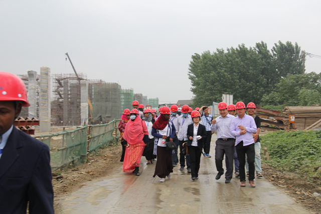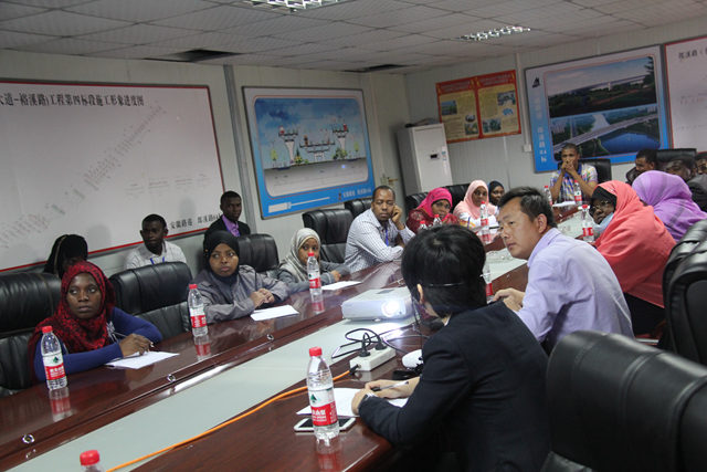 項目部首先向桑給巴爾客人介紹了公司基本情況以及郎溪路四標(biāo)項目的概況、工程質(zhì)量、進(jìn)度、安全文明管理等工作,隨后去施工現(xiàn)場進(jìn)行了觀摩。