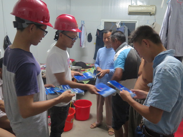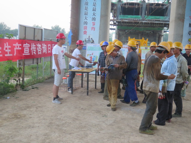 6月16日,開展安全生產(chǎn)宣傳咨詢?nèi)栈顒?dòng),在施工現(xiàn)場(chǎng)和工人住宿將安全施工手冊(cè)發(fā)放到一線工人手中。