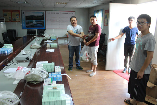為保障高溫期間廣大員工在勞動生產(chǎn)過程中的身體健康、人身安全,安徽路港郎溪路高架項目部高度重視夏季員工防暑降溫工作,提前統(tǒng)一采購防暑降溫藥品,為項目部職工和一線班組人員共計650余人發(fā)放藿香正氣口服液、人丹、十滴水和風(fēng)油精等防暑降溫藥品。