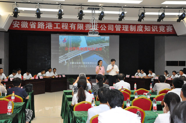 為提高安徽路港公司廣大員工學(xué)習(xí)公司管理制度的自覺性,營造濃厚的學(xué)習(xí)氛圍,保障公司管理制度的貫徹執(zhí)行,助推公司持續(xù)、穩(wěn)定、健康發(fā)展,7月29日下午,安徽路港公司在安建大廈3樓會議室舉辦公司管理制度知識競賽。來自公司所屬各單位、項(xiàng)目部的22支代表隊(duì)共66名選手參加比賽。本次競賽邀請了集團(tuán)公司工會副主席吳曉伍到會指導(dǎo)并擔(dān)任裁判。公司董事長李振標(biāo)、黨委副書記馬斌、副總經(jīng)理袁民、紀(jì)委書記、工會主席干戈、財(cái)務(wù)總監(jiān)章興紅出席。