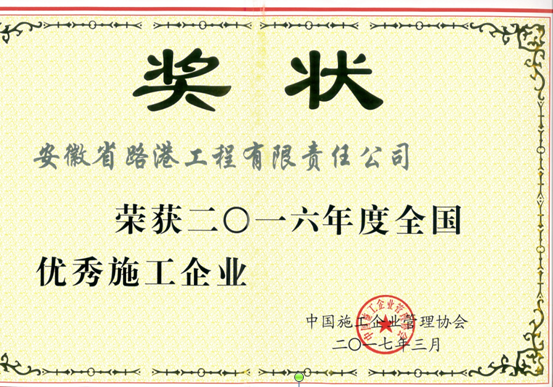 近日,由中國施工企業(yè)管理協(xié)會評選的2016年度“全國優(yōu)秀施工企業(yè)”、“全國工程建設(shè)優(yōu)秀項目經(jīng)理”結(jié)果揭曉,安徽路港憑借優(yōu)秀的施工業(yè)績再次榮獲“全國優(yōu)秀施工企業(yè)”榮譽,項目經(jīng)理林虎榮獲“全國工程建設(shè)優(yōu)秀項目經(jīng)理” 稱號。