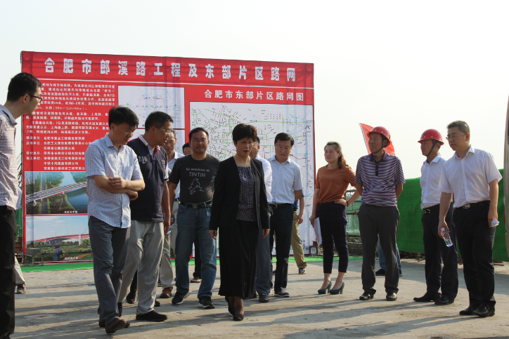 5月21日下午,合肥市市長(zhǎng)凌云在副市長(zhǎng)寧波、秘書(shū)長(zhǎng)柴修發(fā)等陪同下,赴安徽路港承建的郎溪路04標(biāo)項(xiàng)目調(diào)研。
