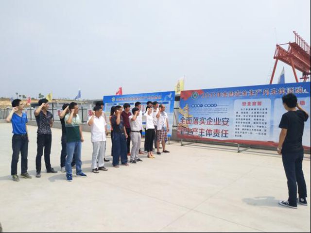 我是一名安徽建工人,我鄭重宣誓:時(shí)刻注意安全,遵守安全法規(guī)。履行安全職責(zé),提高安全技能。杜絕三違現(xiàn)象,保證四不傷害。強(qiáng)化紅線意識(shí),促進(jìn)安全發(fā)展。為了家人幸福、企業(yè)發(fā)展,誓做建工“安全人”。錚錚誓言響徹云霄,筆尖揮斥千金承諾。6月1日至2日,安徽路港公司機(jī)關(guān)及所屬各單位、項(xiàng)目部莊嚴(yán)舉行了2017年“安全生產(chǎn)月”宣誓簽名儀式,拉開(kāi)了今年以“全面落實(shí)企業(yè)安全生產(chǎn)主體責(zé)任”為主題的“安全生產(chǎn)月”系列活動(dòng)序幕。