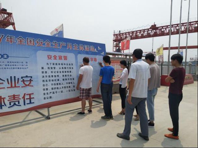 (圖為合寧預(yù)制標(biāo)項(xiàng)目部舉辦“安全生產(chǎn)月”宣誓簽名活動(dòng))