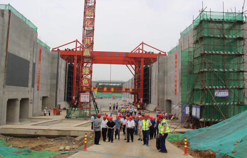安徽港投集團(tuán)觀摩團(tuán)到安徽路港南坪船閘項(xiàng)目部進(jìn)行現(xiàn)場(chǎng)觀摩