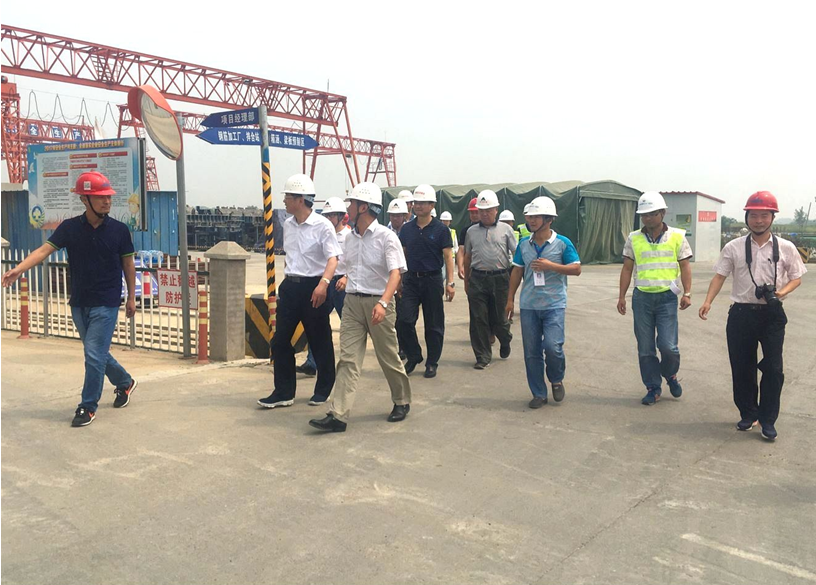 6月21日上午,安徽省交通運(yùn)輸廳黨組成員、巡視員羅寧一行赴安徽路港合寧預(yù)制02標(biāo)項(xiàng)目部檢查指導(dǎo)工作,省交通運(yùn)輸廳基建處處長(zhǎng)張國(guó)棟、省交通質(zhì)監(jiān)局局長(zhǎng)何光、安徽交控集團(tuán)副總經(jīng)理王宏祥、安徽路港公司副總經(jīng)理錢玉寶陪同。