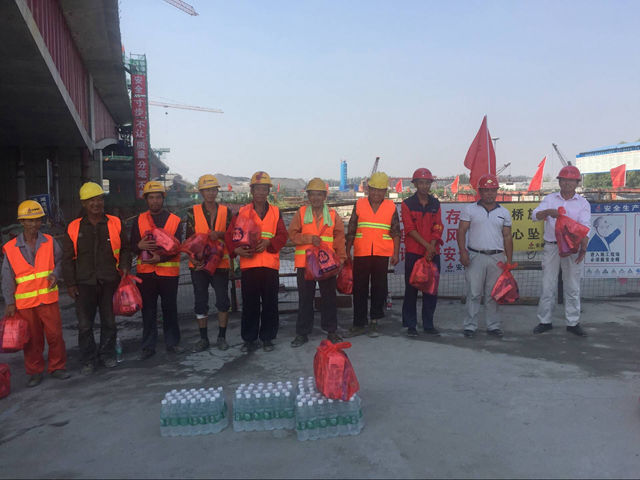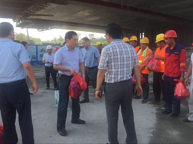 單虎一行認(rèn)真聽取了安徽路港郎溪路四標(biāo)項(xiàng)目部關(guān)于防暑降溫工作措施的匯報(bào),特別囑咐合肥市重點(diǎn)局及項(xiàng)目部要做好高溫期間的日常服務(wù)保障工作,切實(shí)做好惡劣天氣條件下廣大職工的勞動(dòng)保護(hù)、安全生產(chǎn)工作,要求項(xiàng)目部合理安排好一線工作人員作息時(shí)間和休息場(chǎng)所,盡量采取避高溫錯(cuò)時(shí)工作制,確保無(wú)中暑等意外情況發(fā)生。