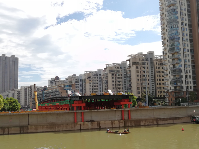 目前,項(xiàng)目部已完成北岸全部樁基施工,南岸剩余11根樁基施工正在緊張有序地進(jìn)行中。北岸現(xiàn)場(chǎng)施工進(jìn)度正按照計(jì)劃逐步推進(jìn)。主橋鋼結(jié)構(gòu)頂推作為現(xiàn)階段施工重點(diǎn),已完成橋面板吊裝和人行道板吊裝,預(yù)計(jì)9月中旬完成橋面板、人行道板焊接和拱肋支架搭設(shè)安裝工作,9月20日具備頂推條件。