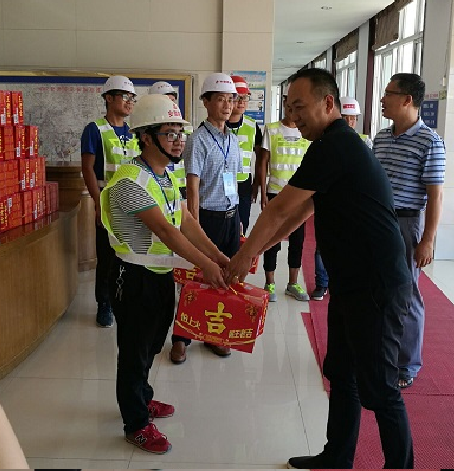 業(yè)主領(lǐng)導(dǎo)將防暑降溫用品發(fā)放到項(xiàng)目部每一位員工的手中,詳細(xì)了解了項(xiàng)目當(dāng)前建設(shè)進(jìn)展,叮囑大家在戰(zhàn)高溫的同時,要時刻注意身體健康,合理安排作息時間,確?,F(xiàn)場管理人員及工友安全。