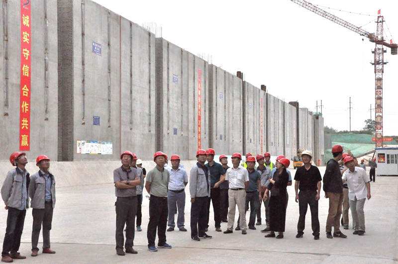(圖為督察組視察澮河南坪船閘主體工程施工情況)