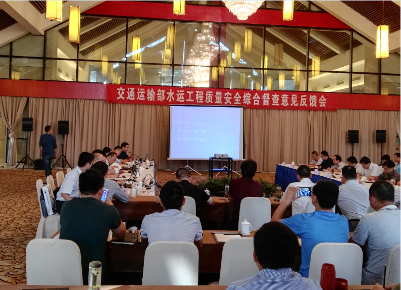 (圖為交通運(yùn)輸部水運(yùn)工程質(zhì)量安全綜合督察意見反饋會現(xiàn)場)