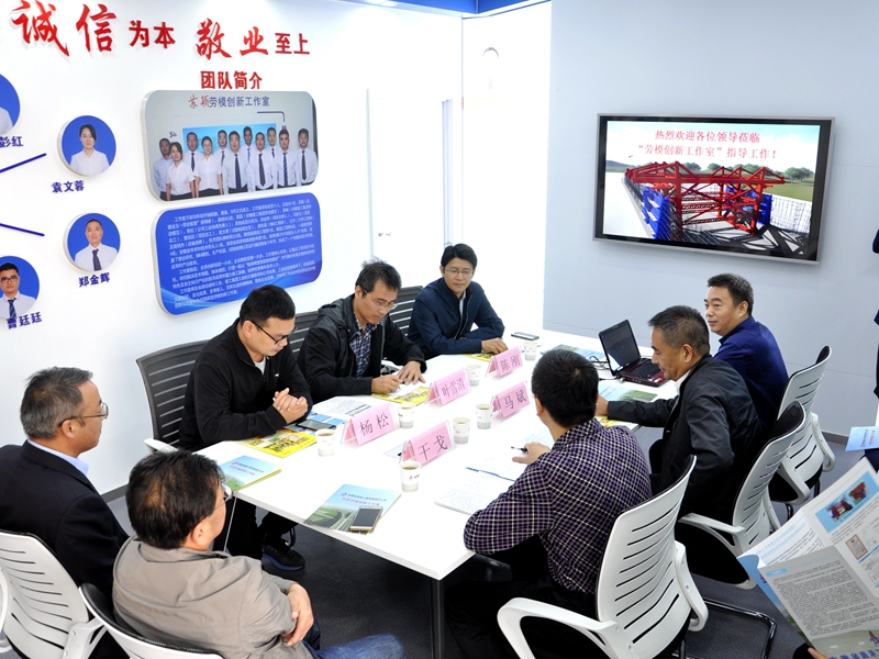 為擴(kuò)大科技創(chuàng)新工作參與面,提升員工隊(duì)伍素質(zhì),增強(qiáng)公司核心競(jìng)爭(zhēng)力,10月17日上午,安徽路港“蘇穎勞模創(chuàng)新工作室”正式揭牌成立,省建設(shè)建材工會(huì)副主任葉雪清,集團(tuán)公司總工辦主任陳剛、工會(huì)主管楊松蒞臨指導(dǎo),公司黨委書(shū)記馬斌出席揭牌儀式,儀式由公司紀(jì)委書(shū)記、工會(huì)主席干戈主持。