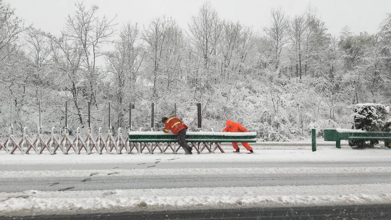 2月15日,六安、宣城等地突降大雪,高速公路被冰雪覆蓋。