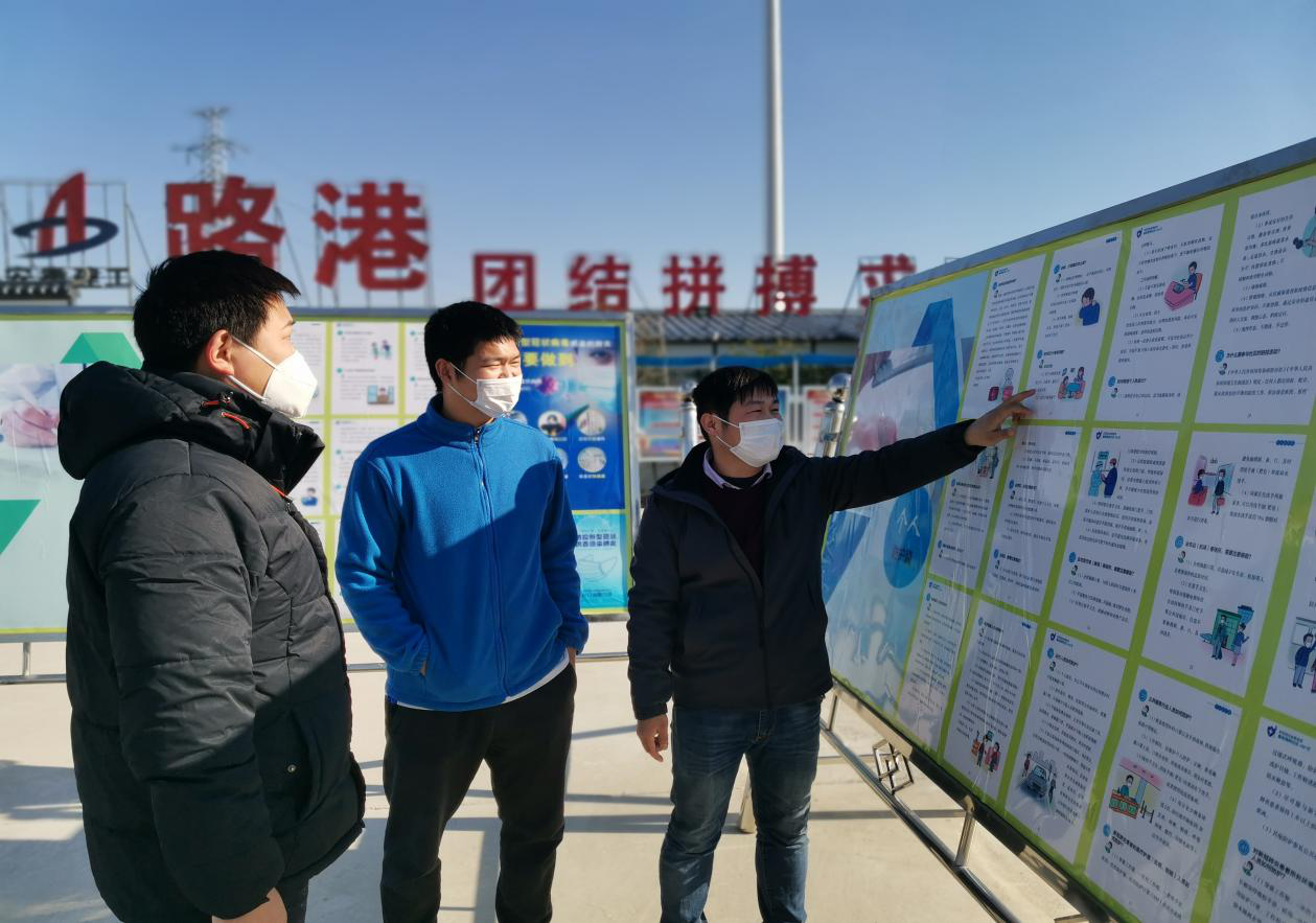 為了推進(jìn)防疫知識人人皆知、入腦入心,項(xiàng)目部在人員進(jìn)出口位置懸掛橫幅、海報(bào)、展板等防疫提示語,還通過工作群、內(nèi)部辦公網(wǎng)絡(luò)等形式宣傳防疫措施,同時(shí)對每位工作人員進(jìn)行防疫知識培訓(xùn),營造疫情防控的深厚宣傳氛圍。