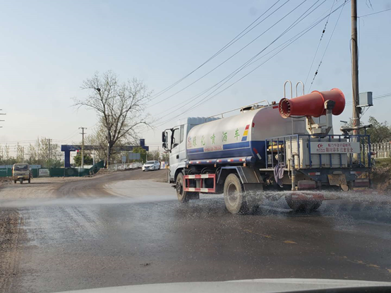 氣溫逐漸升高,項目部每天都安排灑水車多頻次清灑場區(qū)內(nèi)外路面,進行噴灑、降溫降塵工作,嚴格按要求保持工地現(xiàn)場衛(wèi)生整潔。