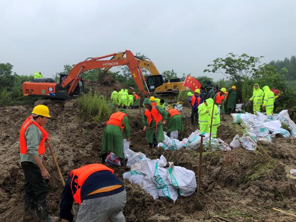 7月19日,合肥地區(qū)持續(xù)暴雨,市政分公司興業(yè)大道項目部收到當(dāng)?shù)卣笾骸半U情告急!合肥市蜀山區(qū)小廟鎮(zhèn)小蜀山支渠決堤了!”
