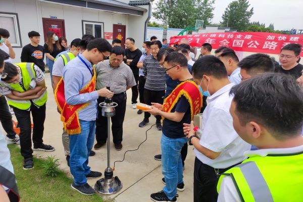 羅寧首先對工地一線科技工作者表示慰問,隨后為大家發(fā)放科普讀本和新頒布的安徽省地方標(biāo)準(zhǔn)《公路工程路基動態(tài)回彈模量現(xiàn)場測試規(guī)程》,并安排科普工作者進(jìn)行路基動態(tài)回彈模量現(xiàn)場實操演示。羅寧表示:省公路協(xié)會將繼續(xù)做好“四個服務(wù)”,推動協(xié)會擴大發(fā)展,重點服務(wù)省內(nèi)項目,希望一線科技工作者繼續(xù)為安徽交通建設(shè)貢獻(xiàn)力量。