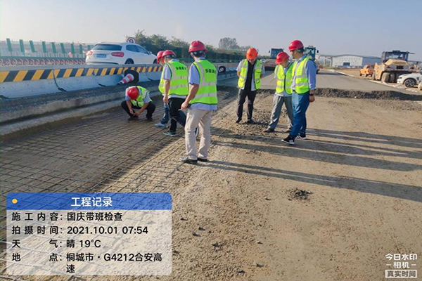 為鼓舞士氣,協(xié)調(diào)解決項目建設(shè)過程中遇到的困難,國慶期間,公司黨委副書記、總經(jīng)理錢葉琳先后赴文忠路、G318項目、太湖S246項目調(diào)研指導(dǎo),慰問“十一”國慶期間堅守崗位的一線項目職工。公司副總經(jīng)理錢玉寶、徐士征參與部分項目調(diào)研。
