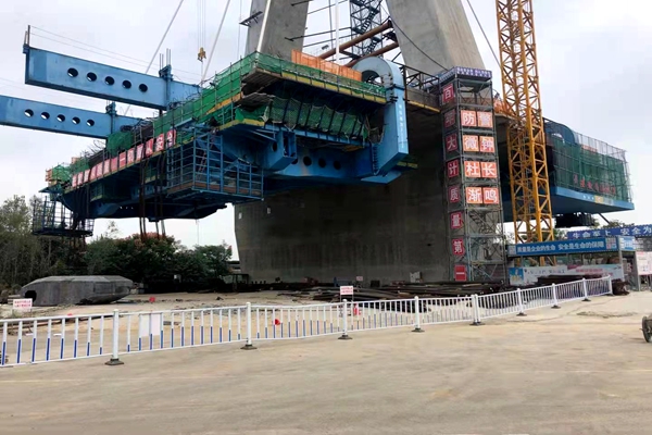 【嘉山大道上跨高速公路橋項目2#塊懸澆段掛籃行走順利到位】