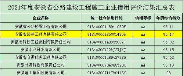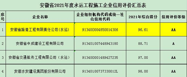 公司獲得2021年度公路、水運(yùn)、養(yǎng)護(hù)信用評(píng)價(jià)AA等級(jí)