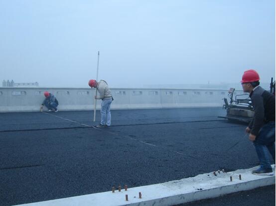 S316裕溪河特大橋北岸引橋?yàn)r青混凝土順利攤鋪