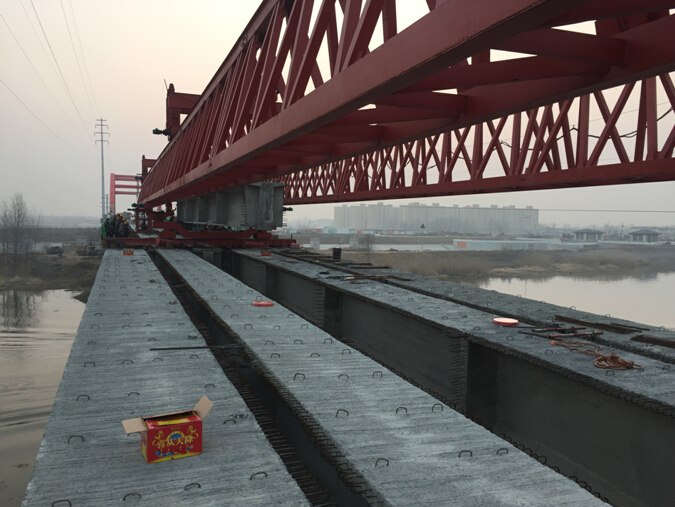 S101橋從2015年12月18號開始進行新建引橋T梁架設(shè),歷時17天,共計架設(shè)35片T梁(包括5片20米T梁、15片30米T梁,15片35米T梁分別位于拱橋的兩側(cè))。其中在T梁架設(shè)的最后一跨施工中,由于老橋T梁結(jié)構(gòu)受力不均勻,導致架橋機無法正常開展吊裝工作。經(jīng)過項目部與業(yè)主及監(jiān)理單位的反復溝通驗證后,采用吊車與架橋機配合使用,分散受力,最終成功完成T梁架設(shè)工作。此目標節(jié)點完成,意味著本橋全面進入橋面系作業(yè)。項目部將加班加點,統(tǒng)籌安排,盡快完成剩余施工任務,為試通行節(jié)點目標打下堅實基礎(chǔ)。