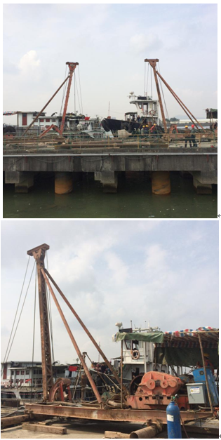 該工程項(xiàng)目是將2個(gè)500噸級(jí)件雜貨泊位改擴(kuò)建為1個(gè)1000噸級(jí)雜貨(兼顧部分集裝箱)泊位。工程內(nèi)容為:新建45噸固定式起重機(jī)基礎(chǔ)(其中8根D1200mm鉆孔灌注樁,設(shè)計(jì)樁長(zhǎng)50m。);對(duì)碼頭部分破損的構(gòu)件進(jìn)行加固和修補(bǔ);更換、新增橡膠護(hù)舷和系船柱;碼頭前沿停泊水域浚深至-4.0米(理論最低潮面)等。