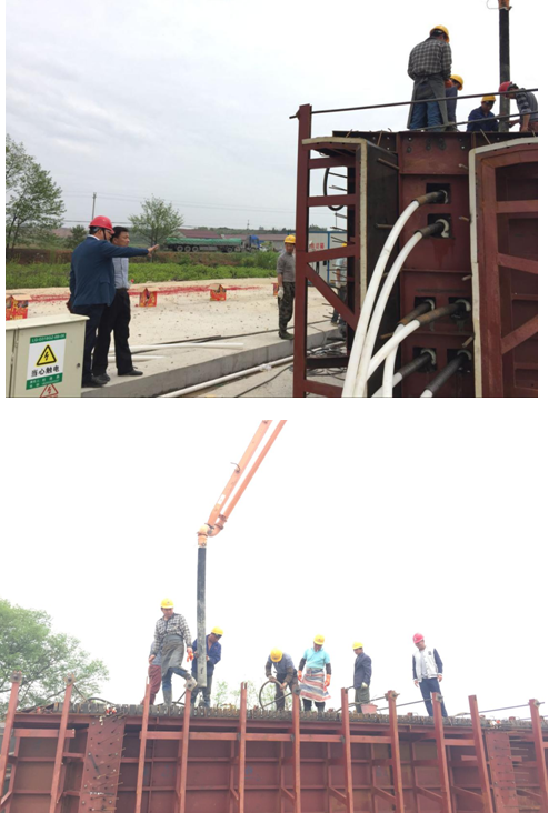 首片T梁系屬南河大橋邊跨中梁0-2#,跨徑40m,高2.5m,寬1.7m,砼總計(jì)方量63m³。第一片T梁順利澆筑拉開(kāi)了橋梁施工的新帷幕,標(biāo)志著本項(xiàng)目開(kāi)始進(jìn)入橋梁上部結(jié)構(gòu)施工階段。