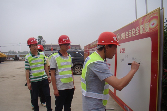 項目部負責人強調(diào):大家要時刻牢記安全誓言,時時提醒參建員工注意安全,增強全員的安全意識,提高安全生產(chǎn)的自覺性和主動性,為項目部順利完工創(chuàng)造條件。最后,全體員工在安全簽名欄上簽名,紛紛表示將立足崗位,信守誓言,堅持原則,嚴把安全關、質(zhì)量關。