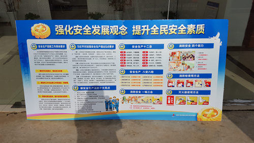 項目部還在項目駐地和施工現(xiàn)場懸掛了宣傳橫幅,張貼了宣傳標語及宣傳畫,確保此次“安全生產(chǎn)月”活動的精神得到宣貫。在以后的安全生產(chǎn)管理工作中,項目部將繼續(xù)強調(diào)安全生產(chǎn)的重要性,規(guī)范現(xiàn)場操作,進一步提高員工的安全責任意識,形成安全為了生產(chǎn),生產(chǎn)必須安全的良好態(tài)勢,避免安全事故的發(fā)生。