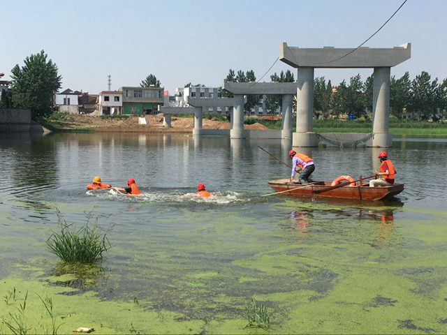 澮河南坪船閘01標(biāo)項(xiàng)目部組織開展水上應(yīng)急救援演練