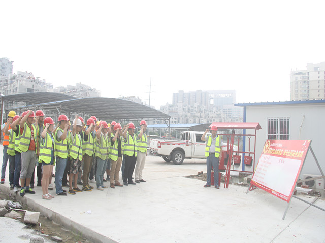 活動(dòng)儀式上,凌經(jīng)理帶頭宣誓,項(xiàng)目部全體職工舉起右拳,以飽滿的精神狀態(tài)莊嚴(yán)宣誓,道出了每位員工對安全生產(chǎn)和保護(hù)自身安全的莊嚴(yán)承諾,標(biāo)志著在以后的生產(chǎn)工作中,銅陵路高架項(xiàng)目所有成員將安全紅線意識進(jìn)行到底的決心。