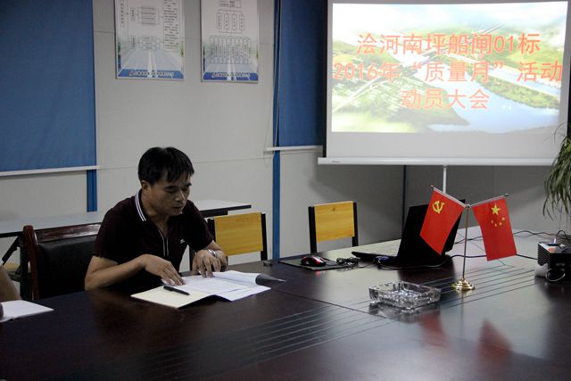 會上,項(xiàng)目總工王佳勝對 “質(zhì)量月”活動進(jìn)行了詳細(xì)安排部署,要求項(xiàng)目各部門、各施工班組立即行動起來,全體動員,全員參與,深入開展2016年全國“質(zhì)量月”活動,一定要嚴(yán)格按照活動安排部署方案要求,牢固樹立質(zhì)量管理意識,自覺遵守質(zhì)量管理規(guī)章制度,進(jìn)一步推進(jìn)南坪船閘項(xiàng)目部施工質(zhì)量管理工作,確保工程質(zhì)量達(dá)標(biāo),爭創(chuàng)精品工程。