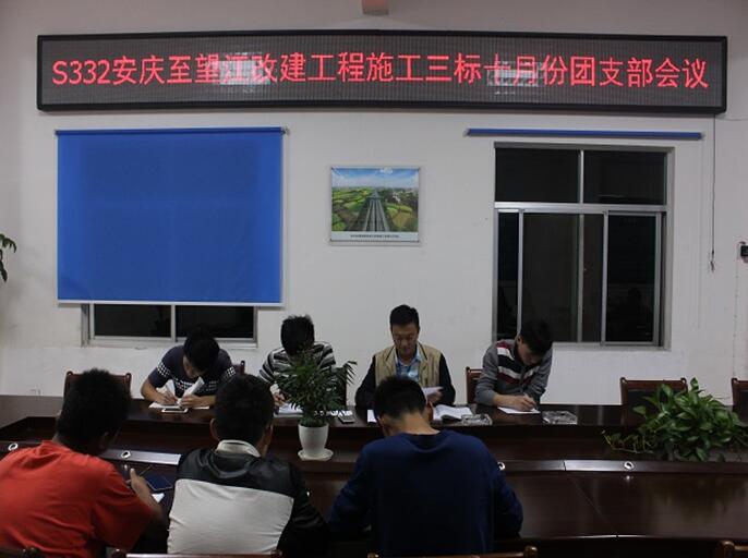 10月18日,S332安慶至望江改建工程施工三標(biāo)項(xiàng)目團(tuán)支部組織召開工作會(huì)議,全體項(xiàng)目部團(tuán)員青年參加,會(huì)議由團(tuán)支部書記王濤主持。