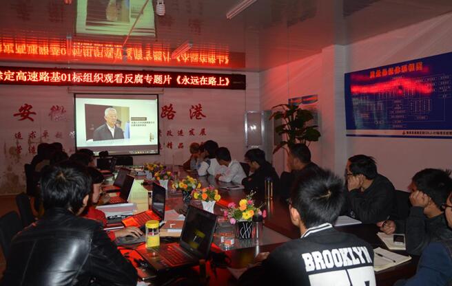 11月1日晚,滁定高速01標項目部利用晚上學習時間,組織全體施工技術人員觀看了反腐專題片《永遠在路上》。