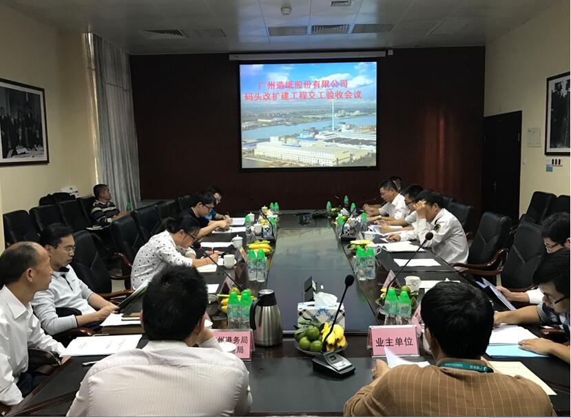 11月14日下午,廣州造紙股份有限公司碼頭改擴建工程交工驗收會議在廣州造紙股份有限公司行政樓一樓會議室舉行,建設(shè)單位、施工單位、監(jiān)理單位、設(shè)計單位、南沙航道局、南沙海事處等14家單位的主要負(fù)責(zé)人參加會議。