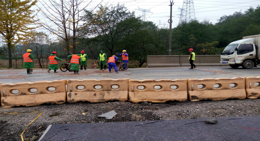 2016年11月22日下午4時(shí)許,由于連續(xù)降雨,加上G318重載車(chē)輛較多,導(dǎo)致臨時(shí)通行段東蓉橋兩端路基出現(xiàn)嚴(yán)重坑洼,影響道路通行速度及安全。為此,G318改建工程項(xiàng)目經(jīng)理部迅速響應(yīng),緊急組織青年突擊隊(duì)員共計(jì)16人冒雨前去搶修。