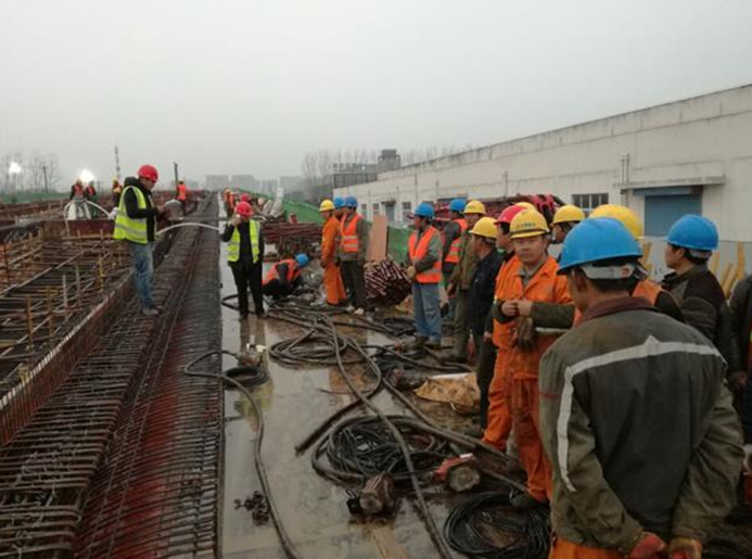 此次現(xiàn)澆內(nèi)容為主線橋第二十四聯(lián)現(xiàn)澆箱梁底腹板,澆筑混凝土1700方,用時(shí)20小時(shí)。為確?,F(xiàn)澆箱梁首次砼澆筑各工序的順利進(jìn)行,項(xiàng)目部于21日召開現(xiàn)澆施工現(xiàn)場交底會(huì),明確分工,責(zé)任到人,制定了詳細(xì)預(yù)案,針對(duì)現(xiàn)澆施工可能出現(xiàn)的問題制定了相應(yīng)的解決措施。