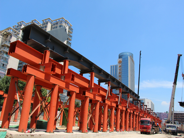 項(xiàng)目部計(jì)劃于8月底開(kāi)始中二街T型鋼板梁的進(jìn)場(chǎng)拼裝工作,9月下旬完成主橋頂推拖拉工作,屆時(shí)將為青弋江新增一道靚麗風(fēng)景。