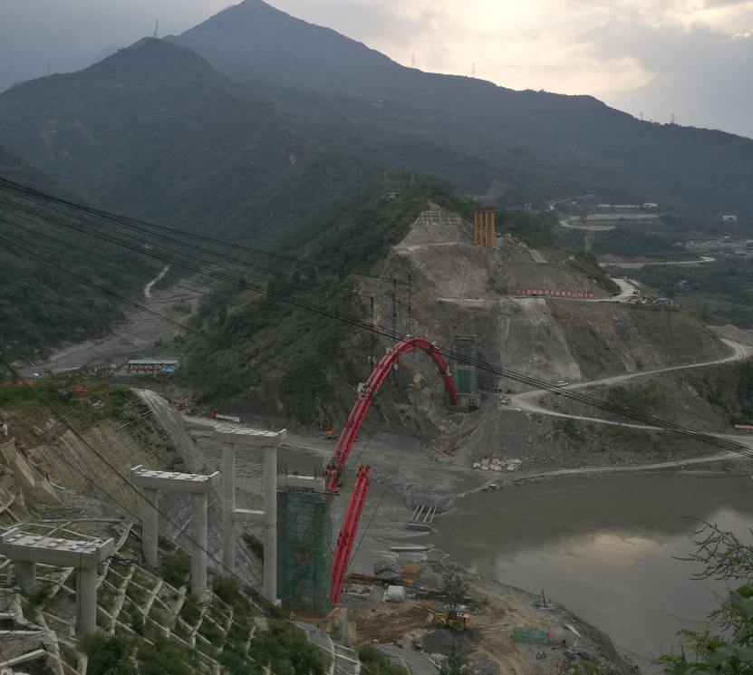 9月28日,北川溜索改橋項(xiàng)目正式開(kāi)始唐家山特大橋上游鋼管拱的吊裝工作。