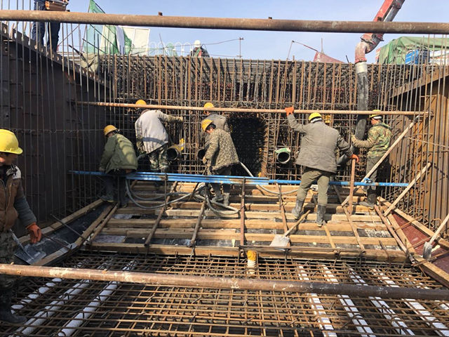 為按時(shí)完成施工任務(wù),項(xiàng)目部參建人員積極響應(yīng)大干號(hào)召,克服冬季施工不利條件、混凝土供應(yīng)緊張等諸多困難,堅(jiān)守崗位、頑強(qiáng)拼搏,于2月7日至8日,完成132#墩左幅現(xiàn)澆段底板澆筑、133#墩左幅14#塊澆筑、135#墩右幅現(xiàn)澆段底板澆筑。為保證冬施取暖和保暖工作滿足工程質(zhì)量要求,項(xiàng)目部投入空調(diào)、土工布、棉被等對(duì)混凝土進(jìn)行保暖。