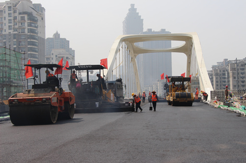 4月1日,隨著第一車環(huán)氧瀝青混凝土的進(jìn)場,蕪湖中山橋橋面環(huán)氧瀝青正式開始攤鋪。按照蕪湖市政府五月初正式通車的要求,中山橋項(xiàng)目部已做好一切準(zhǔn)備,步入通車倒計(jì)時(shí)最后階段。