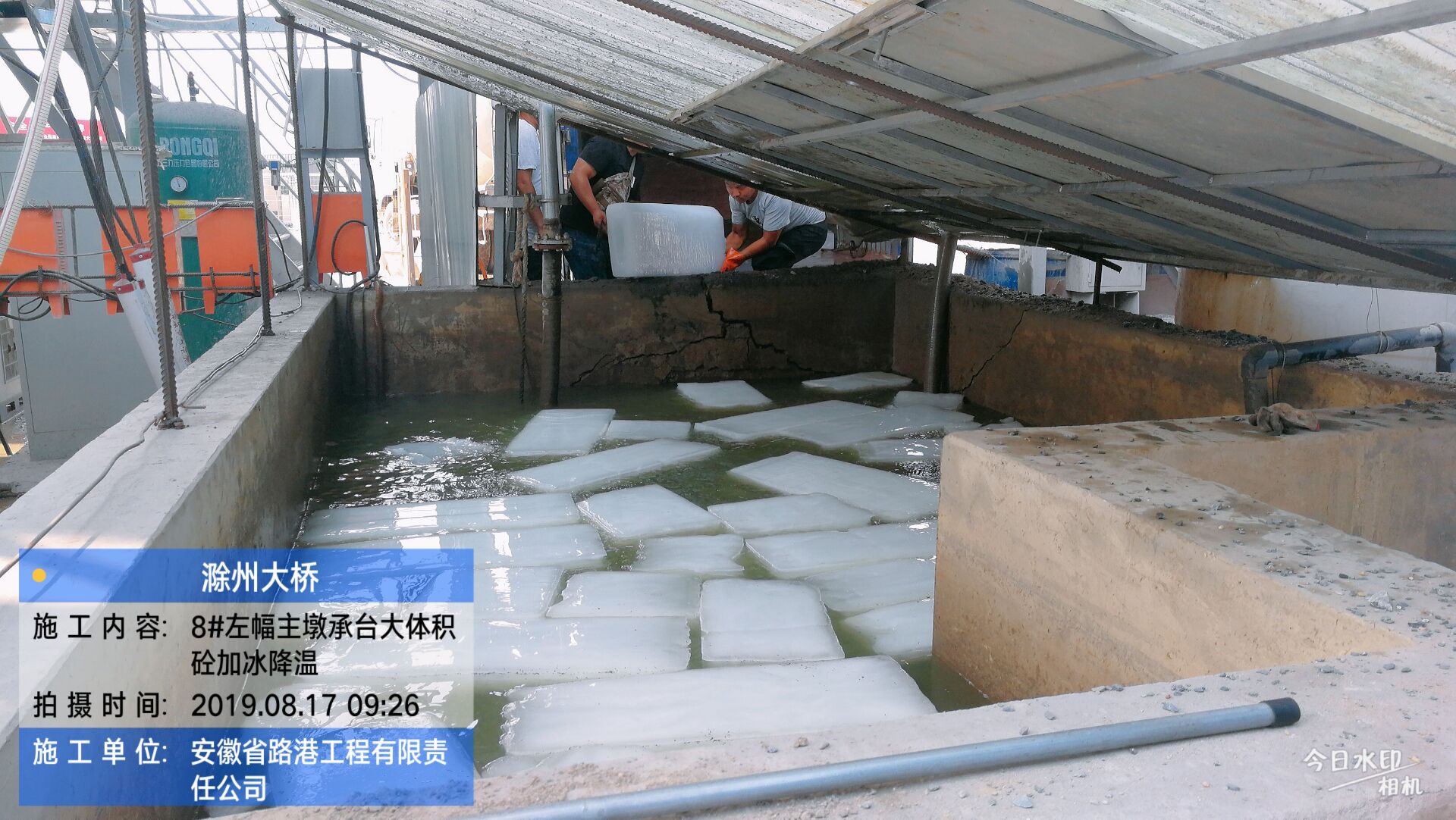 為順利完成混凝土澆筑作業(yè),項(xiàng)目部提前謀化,認(rèn)真做好施工部署及交底工作。因天氣炎熱,對(duì)大體積混凝土的施工技術(shù)要求較高,在施工中要防止混凝土因水泥水化熱引起的溫度差產(chǎn)生溫度應(yīng)力裂縫。為此,項(xiàng)目部采用拌合水加冰降溫及內(nèi)設(shè)冷卻管循環(huán)水施工方法進(jìn)行溫控,在承臺(tái)中布設(shè)10個(gè)測(cè)溫點(diǎn),保證成品施工質(zhì)量。施工完成后,項(xiàng)目部認(rèn)真收集工藝參數(shù),做好首件工程施工總結(jié),為后續(xù)施工打下堅(jiān)實(shí)基礎(chǔ)。