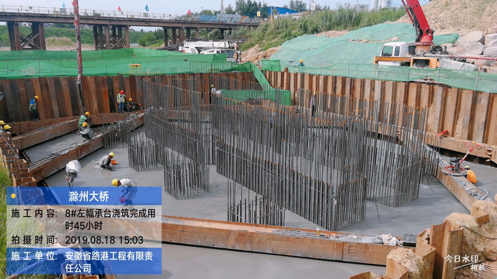8月18日下午,經(jīng)過(guò)45小時(shí)不間斷連續(xù)作業(yè),蘇滁清流河大橋項(xiàng)目控制性節(jié)點(diǎn)8#主墩左幅承臺(tái)大體積混凝土順利澆筑完成。